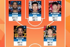 CBA常規(guī)賽第4輪最佳陣容:克里斯 徐昕 陸文博 巴里·布朗 姜偉澤