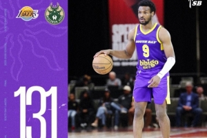 體育資訊12月22日訊 G聯(lián)盟常規(guī)賽,南灣湖人主場(chǎng)131-119擊敗威斯康星鹿群隊(duì)。