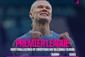 英超單賽季圣誕節(jié)前歷史射手榜:哈蘭德、蘇牙、科爾19球并列第1