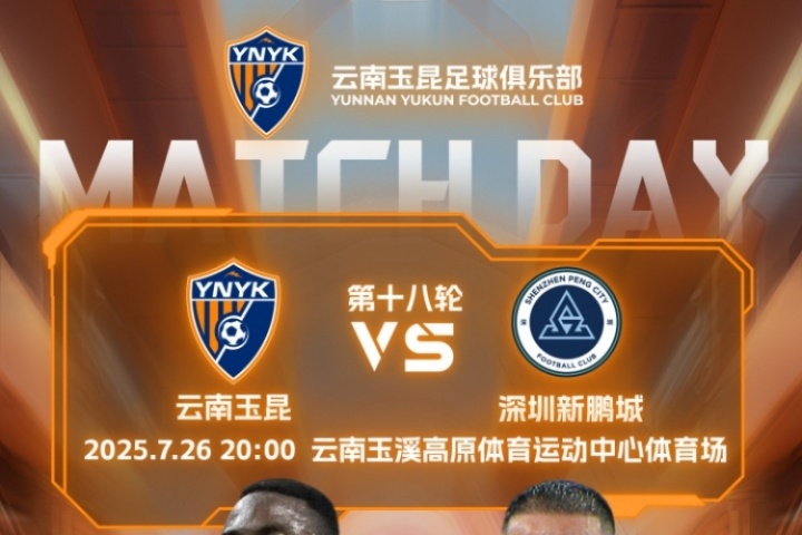 體育資訊07月26日訊 20點(diǎn)中超第18輪,云南玉昆主場迎戰(zhàn)深圳新鵬城。