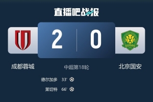 體育資訊7月26日訊 中超第18輪,北京國安0-2不敵成都蓉城。