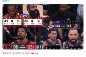 體育資訊12月24日訊 NBA常規(guī)賽,火箭108-128慘敗快船,太陽132-108大勝湖人。