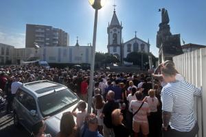 記者表示,當(dāng)?shù)厝撕颓蛎砸黄鹪诮烫猛鈦辛ⅲS多人穿著球衣,外面掛著葡萄牙國(guó)旗。教堂的另一邊時(shí)不時(shí)傳來(lái)莊嚴(yán)的掌聲,記者推測(cè)大概是親密親屬聚集的地方。