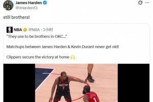 哈登本人轉(zhuǎn)發(fā),并評論道:“依舊是兄弟?。⊿till brothers?。?/p>