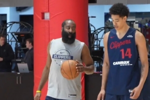 體育資訊12月24日訊 今天對陣火箭賽前,美媒發(fā)布了一則快船球星哈登和新秀中鋒尼德豪澤擋拆訓練的視頻。