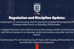 英足總官方:南安普頓與考文垂因賽后違規(guī)行為遭到指控
