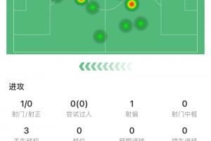 阿蘇埃53分鐘1次射門(mén)0射正,11次觸球5次傳球,3次丟失球權(quán)。1次解圍、1次成功搶斷,1次地面對(duì)抗成功。