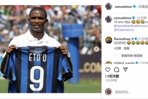 埃托奧社媒曬出自己與伊布當時互換東家的照片,配文:“16年前?!辈伊布、國米和巴薩。