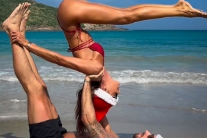 迎接圣誕節(jié)!特拉普與超模未婚妻高難度瑜伽動(dòng)作秀恩愛(ài)