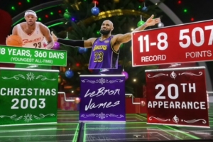 詹姆斯保持著圣誕大戰(zhàn)最年輕出戰(zhàn)紀(jì)錄 此前19次亮相戰(zhàn)績(jī)11-8!