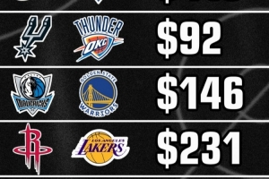 體育資訊12月25日訊 今日美媒Buckets統(tǒng)計(jì)了明天5場(chǎng)圣誕大戰(zhàn)的最低票價(jià),具體如下: