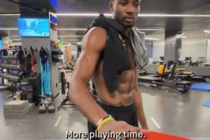 庫明加抽到斯潘塞,禮物:更多的出場時間(More playing time),庫明加說完拍了兩下抽獎箱離去