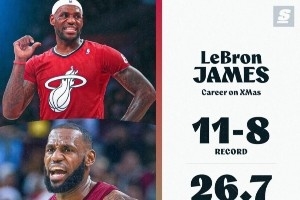 圣誕大戰(zhàn)對(duì)比:詹姆斯11勝8負(fù) KD6勝6負(fù) 庫(kù)里4勝7負(fù)&場(chǎng)均17.6分
