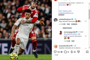 貝林厄姆留言調(diào)侃:“抱得太緊了吧,兄弟????”