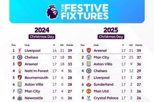 體育資訊12月25日訊 西方傳統(tǒng)節(jié)日圣誕節(jié)之際,英超官方曬圖對本賽季和上賽季的節(jié)禮日積分榜進(jìn)行了對比。