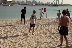 巴薩邊鋒亞馬爾正在迪拜度假,這位18歲的球員現(xiàn)身迪拜海灘,加入一場沙灘足球賽,與孩子們一起踢球。