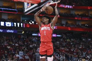 火箭球員阿門上半場(chǎng)依舊沖擊力十足,進(jìn)攻端多次沖擊內(nèi)線拿分,前場(chǎng)籃板搶得也很猛,還有空接暴扣的精彩表現(xiàn)。