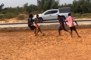 體育資訊12月26日訊 巴薩邊衛(wèi)孔德在非洲貝寧度假,與孩子們一起踢球。