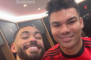 庫尼亞賽后更新社媒動態(tài),曬出與卡塞米羅在更衣室的合照,配文:“來自巴西。”