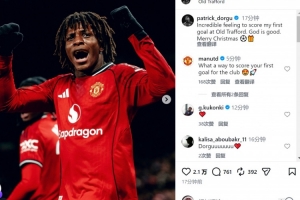 多爾古社媒曬出慶祝進(jìn)球的照片,配文:“在老特拉福德打入首球的感覺不可思議。上帝眷顧,圣誕快樂?!?/p>