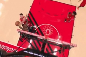 好像打到頭了!科林斯海報扣籃被帽劈叉 但吹了克林根犯規(guī)