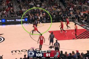 GIF-暫停后,小卡被斷,開拓者快攻兩分打進
