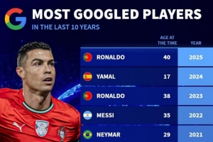 體育資訊12月27日訊 《轉(zhuǎn)會(huì)市場》根據(jù)谷歌搜索列出了近10年的年度被搜索次數(shù)最多的足球運(yùn)動(dòng)員,C羅共計(jì)6次登頂。