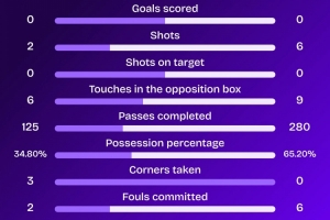 上半場(chǎng)曼城射門6次,射正0次,據(jù)Squawka統(tǒng)計(jì),曼城2025年首次英超上半場(chǎng)比賽0射正。