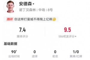 體育資訊12月27日訊 諾丁漢森林在本輪英超1-2不敵曼城,埃利奧特·安德森本場數(shù)據(jù)如下: