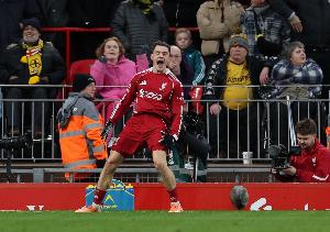 體育資訊12月28日訊 利物浦vs狼隊(duì)第42分鐘,?;倏藬嗲蚝笕饲蚍诌^,直塞助攻維爾茨破門,后者打進(jìn)利物浦生涯首球。
