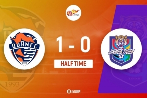 傷停補時8分鐘。上半場比賽結束,青島海牛1-0天津津門虎。