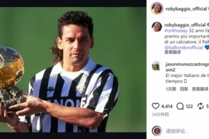 體育資訊12月28日訊 意大利足壇名宿巴喬更新社媒動(dòng)態(tài),回顧32年前的今天贏得金球獎(jiǎng)。