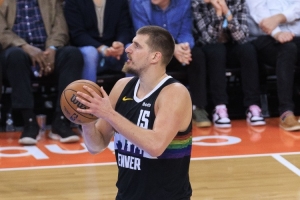 約基奇出戰(zhàn)38分鐘01秒,22投11中,13罰12中,砍下34分21籃板12助攻。
