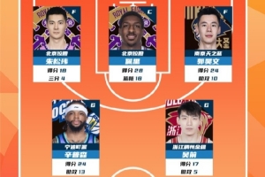 2025-2026賽季CBA聯(lián)賽常規(guī)賽第7輪結(jié)束較量,來自北京控股籃球俱樂部的朱松瑋和佩里,南京同曦籃球俱樂的郭昊文,寧波富邦町渥男籃的辛普森和浙江稠州籃球俱樂部的吳前入選CBA聯(lián)賽常規(guī)賽第7輪最佳陣容!