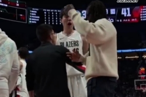 體育資訊12月29日訊 今日開拓者114-108主場戰(zhàn)勝凱爾特人,比賽中的一次暫停時(shí)朱·霍勒迪對楊瀚森進(jìn)行了指導(dǎo)。
