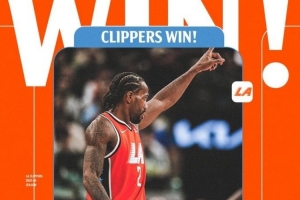 賽后快船官方發(fā)布贏球海報,萊昂納德當選封面人物。