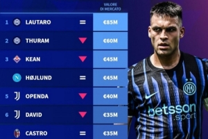 1、勞塔羅(國(guó)際米蘭),8500萬歐元