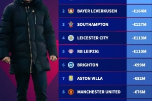 體育資訊12月30日訊 2025年即將結(jié)束,德國轉(zhuǎn)會市場盤點了這一年俱樂部身價下跌情況,皇家社會下跌1.77億歐居首,曼聯(lián)下跌7600萬歐第8。