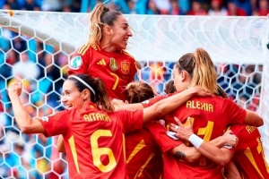 西班牙女足首發(fā):13-科爾、2-巴特勒、4-帕雷德斯、14-亞歷山德里、7-奧爾加、12-帕特里夏-吉哈羅、6-邦馬蒂、11-普特拉斯、8-馬里奧娜、10-阿西納-德?tīng)?卡斯蒂略、9-埃絲特