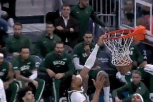 GIF-字母哥轉(zhuǎn)身扛開小橋,左手單臂虐筐