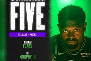 體育資訊12月30日訊 鵜鶘今天在主場迎戰(zhàn)尼克斯,賽前首發(fā)陣容出爐: