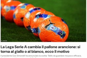 意甲聯(lián)盟被迫更換從聯(lián)賽第12輪起使用的、曾引發(fā)討論的熒光橙色足球,這一更換將在2026年初及下半賽季開始之際進(jìn)行,但不會立即實施,該決定是在眾多色盲球迷投訴無法在球場中辨識足球后作出的。