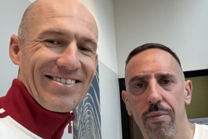 拜仁官方曬出了羅本與里貝里兩位俱樂部傳奇的“懟臉”自拍合照:傳奇。