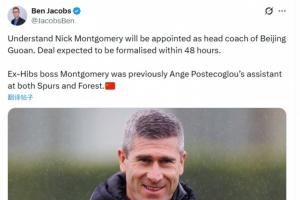 雅各布斯:前澳波助教蒙哥馬利將出任國安主帥,48小時內(nèi)簽署協(xié)議