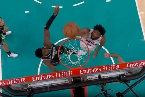 擱這刷籃板呢?恩比德連續(xù)3個(gè)回合補(bǔ)籃不中 最后點(diǎn)籃終于終結(jié)