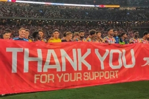 此役在新加坡國家體育場進(jìn)行,阿森納官方社媒曬出賽后的視頻,槍手球員們拉出橫幅感謝新加坡球迷的支持,并為球迷簽名。