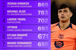 五大聯(lián)賽年度進攻三區(qū)傳球榜:佩德里居首,亞馬爾,姆巴佩在列