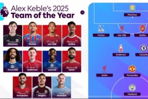 體育資訊1月1日訊 足球作家Alex Keble評(píng)2025年英超最佳陣,中衛(wèi)范戴克+薩利巴,B費(fèi)、哈蘭德、薩拉赫、凱塞多在列。