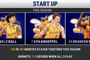 同時(shí),他們?nèi)硕汲鰬?zhàn)的比賽,球隊(duì)為7勝5負(fù),而三人沒(méi)能同時(shí)出戰(zhàn)的比賽,4勝16負(fù)。