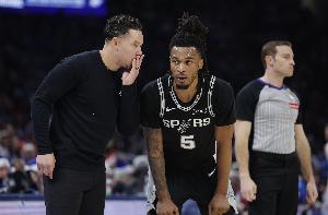 賽前,馬刺主帥米奇·約翰遜在接受采訪時表示,自己對卡斯爾今天(拇指受傷)能夠上場持樂觀態(tài)度。